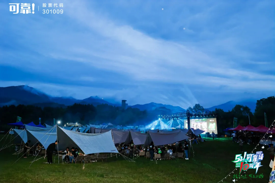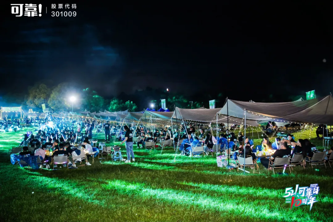 夜幕四合,繁星初上,可靠全體600余人心連心聚在一起,圍坐在千島湖溫馨靜謐的露營(yíng)草地上傾聽(tīng)、分享,溫暖的燈光映照著每一張興奮的臉龐,將整個(gè)營(yíng)地渲染地暖心又熱烈。四周的帳篷點(diǎn)綴著五彩斑斕的燈光,像是星星點(diǎn)點(diǎn)的夢(mèng)境,為晚會(huì)增添了幾分神秘和浪漫。