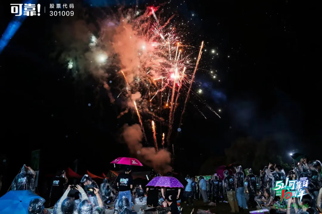 蛋糕分享結(jié)束后,主持人帶領(lǐng)大家倒計(jì)時(shí)迎接煙花驚喜,伴隨著現(xiàn)場(chǎng)可靠人齊聲高喊:10、9、8、…3、2、1倒計(jì)時(shí)結(jié)束,現(xiàn)場(chǎng)氣氛達(dá)到高潮,滿場(chǎng)煙花驚喜綻放,帶著眾人的祝福和心愿升上高空。晚會(huì)在浪漫的煙花中落下帷幕,2024年521可靠日以浪漫而美好的姿態(tài)鐫刻在每一名可靠人心中。