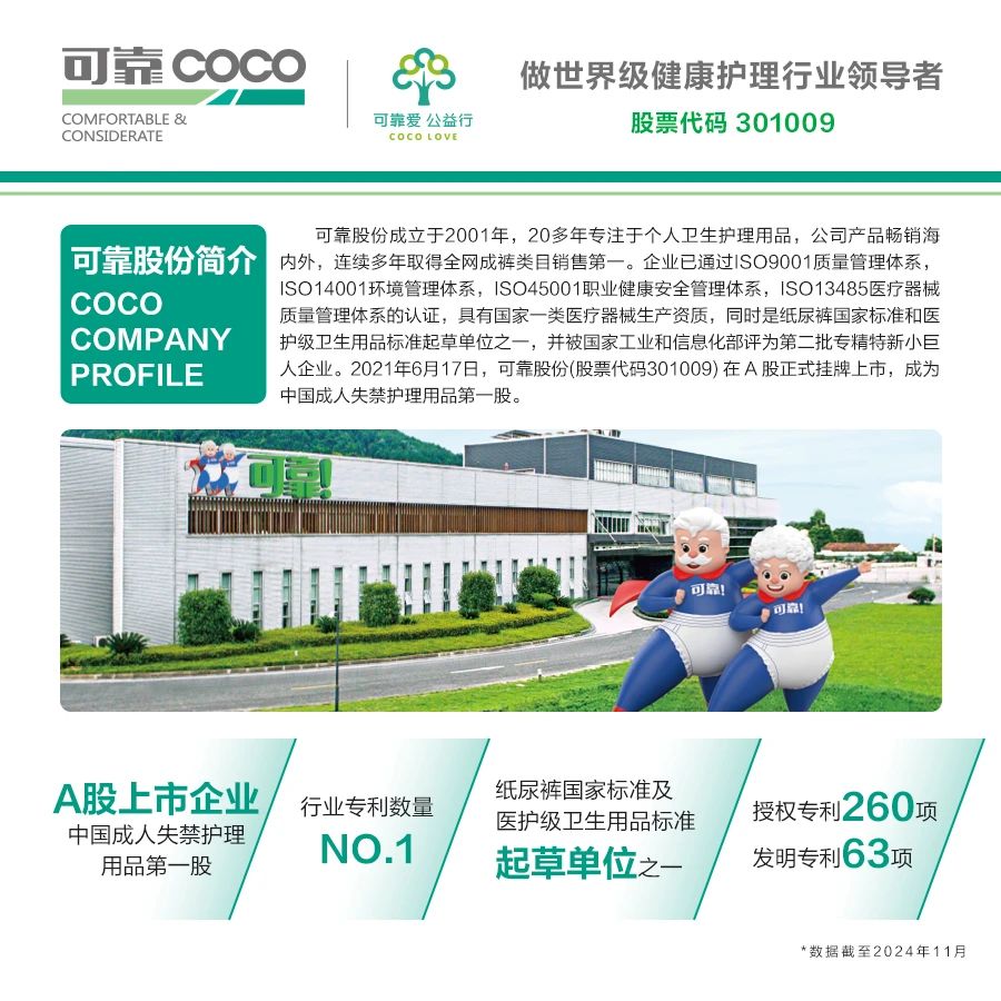可靠股份成立于2001年,一直專注于個(gè)人衛(wèi)生護(hù)理用品的設(shè)計(jì)、研發(fā)、生產(chǎn)和銷售,截至 2024 年 11 月,公司已擁有授權(quán)專利 260 項(xiàng),發(fā)明專利 63 項(xiàng),被國(guó)家工業(yè)和信息化部評(píng)為第二批專精特新小巨人企業(yè)。可靠在產(chǎn)品研發(fā)、提供服務(wù)的同時(shí),始終堅(jiān)持以用戶為中心的理念,通過深入了解用戶需求、不斷優(yōu)化產(chǎn)品和服務(wù),更好的滿足不同用戶服務(wù)需求。