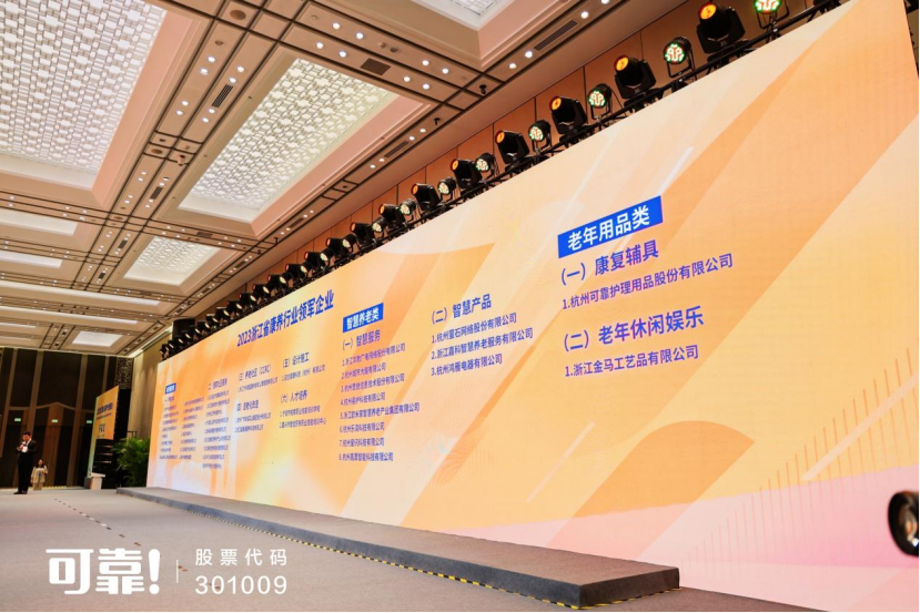 在開幕儀式上,浙江省民政廳正式發(fā)布“2023年康養(yǎng)行業(yè)領軍企業(yè)”入選名單,可靠股份憑借優(yōu)質的產品和服務順利入選。本次評選,浙江省內共有44家企業(yè)入選,其中老年用品類企業(yè)僅有2家,可靠股份是成人失禁護理用品領域唯一入選的企業(yè)。